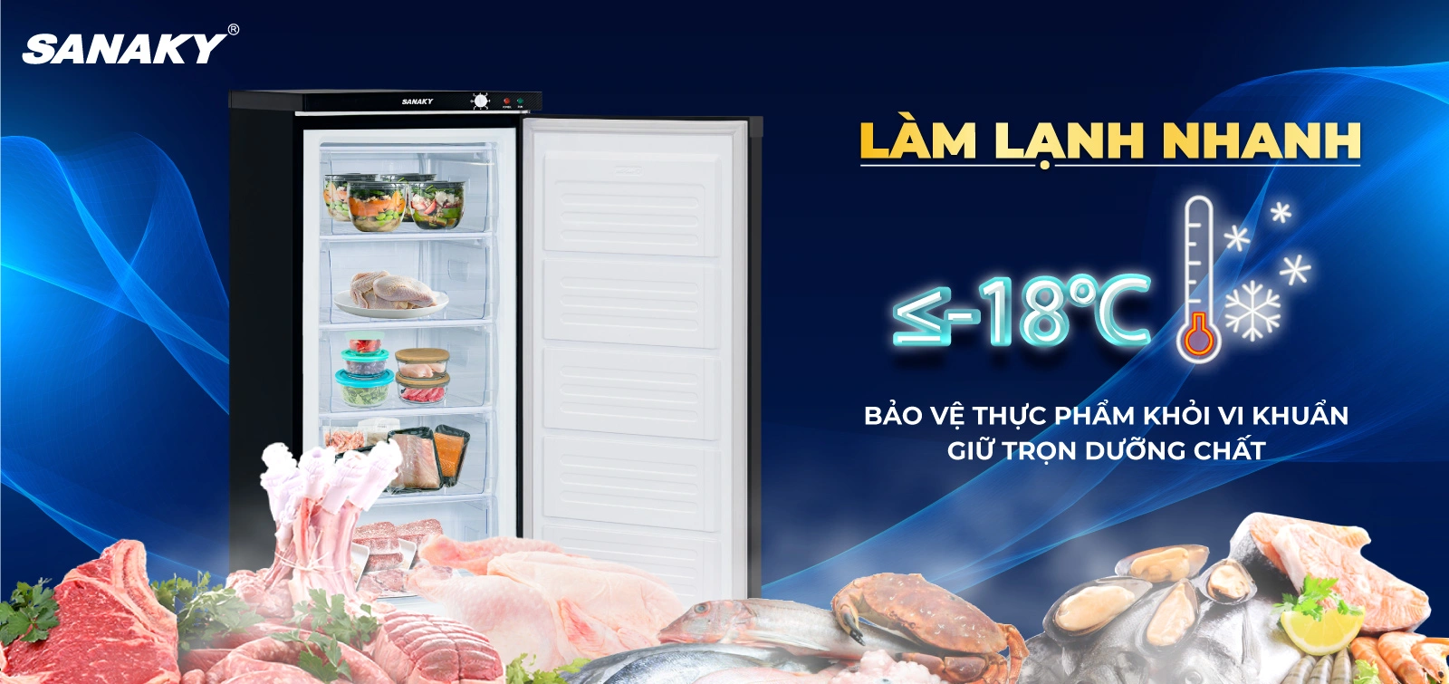 Làm lạnh nhanh, giữ thực phẩm tươi lâu.