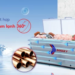 Với dung tích 900 lít, thiết kế 1 ngăn đông – 3 cánh mở, cùng công nghệ dàn lạnh đồng + làm lạnh 360°, Tủ đông Sanaky VH-1199HY là lựa chọn hoàn hảo cho các cơ sở kinh doanh cần trữ thực phẩm số lượng lớn. Sản phẩm kết hợp giữa hiệu năng mạnh mẽ, độ bền cao và sự tiện lợi trong quá trình sử dụng.