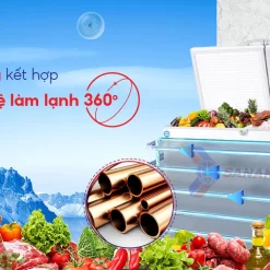 Công nghệ làm lạnh 360°: Hơi lạnh tỏa đều, bảo quản thực phẩm toàn diện, chống tình trạng thực phẩm bị hư hỏng do chênh lệch nhiệt độ.