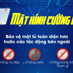 Bề mặt kính cường lực giúp hạn chế va đập, trầy xước, chống hoen gỉ trong điều kiện khí hậu nóng ẩm.