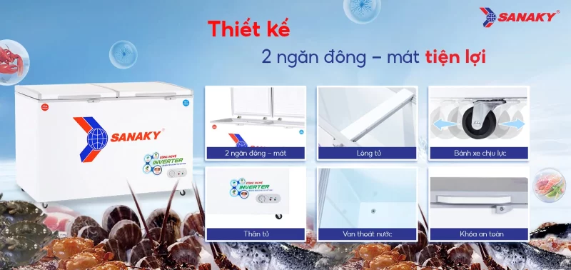 Tủ Đông Sanaky VH-5699W3 là lựa chọn lý tưởng cho gia đình và cửa hàng cần tủ đông dung tích lớn, làm lạnh sâu, vận hành êm, tiết kiệm điện và độ bền vượt trội.