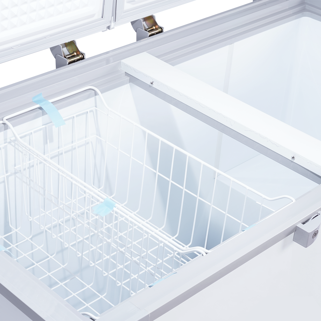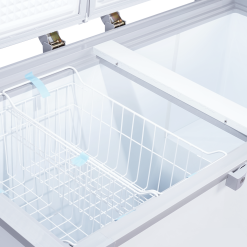 Tủ được thiết kế 1 ngăn đông – 2 cánh mở, giúp người dùng dễ dàng sắp xếp và lấy thực phẩm mà không lo thất thoát hơi lạnh. Lòng tủ làm bằng nhôm sơn tĩnh điện hoặc PCM chống gỉ, dễ lau chùi, chống ăn mòn và bền bỉ theo thời gian.