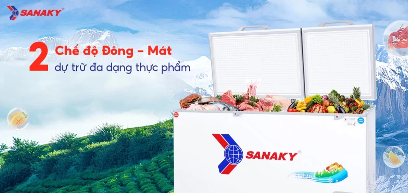 Tủ đông Sanaky VH-6699W1 – 660 lít, 2 ngăn đông, dàn lạnh đồng, làm lạnh sâu