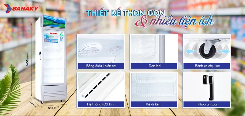 Với thiết kế nhỏ gọn, làm lạnh nhanh, tiết kiệm điện và tính thẩm mỹ cao, Tủ mát Sanaky 1 cánh là lựa chọn hoàn hảo cho không gian trưng bày hiện đại – vừa giúp thực phẩm luôn tươi mát, vừa nâng tầm hình ảnh chuyên nghiệp cho cửa hàng hoặc gia đình bạn.