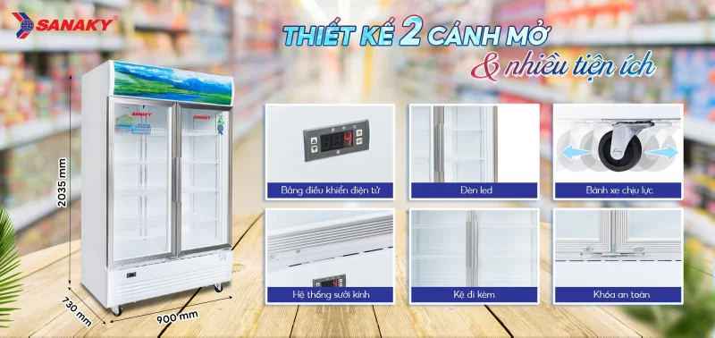 Với công nghệ No-Frost tiên tiến, kính Low-E chống thoát nhiệt, dàn lạnh đồng bền bỉ và thiết kế 2 cánh kính sang trọng, Tủ Mát Sanaky VH-8009HP là giải pháp hoàn hảo cho nhu cầu trưng bày và bảo quản thực phẩm, đồ uống chuyên nghiệp.